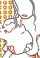 Grün ausgetuscht ist der Pfeilkörper