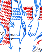 Lieblingspfeil Nr. 826 Getreppte Pfeilbahn Die Ausstellungsräume von Inter in der Falckensteinstr. 47-48 (zwischen Ober- baumbrücke und Schlesischer Str.) sind nicht leicht zu finden so hat Keyfo Temur etliche Einladungskarten mit Pfei- len versehen und in die Hofeinfahrt und in's Treppenhaus gehängt, auf das dass interessierte Publikum die Räume leichter finde, in denen die Ausstellung Becken- kunde [mehr hier] heute eröffnet wurde. Ich zeige links exemplarisch eine Karte mit einer getreppten Pfeilbahn, die ei- gentlich für's Treppenhaus vorgesehen war. |