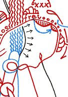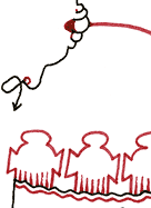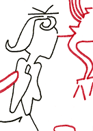 Wenn man bei verschiedenen Zeichnern einen Darsteller aus der Zeichnung heraus nimmt, aus seinem Kontext isoliert einen leicht erkennbaren, natürlich schönen und sinnvollen wie zum Beispiel den Darsteller Gehirn: wie fern [auch] immer die Linien, aus denen er sich zusammensetzt, allem liegen mögen, was an ein Gehirn erinnert, es wird dennoch der Darsteller bei jedem Zeichner auf eine besondere Art wieder zum Leben erwachen. Beim einen wie beim anderen kann man es sehen, bei jedem es selbst und jedes Mal anders. Wir sehen ein smartes oder ein kleinliches Gehirn, ein verkrampft denkendes Hirn, ein boshaftes oder ein unpräzise denkendes Gehirn, ein ängstlich, tollpatschig oder hilflos operierendes Gehirn, ein vertrocknetes oder ungeduldig vorwärts denkendes Gehirn. Mehr zum Darsteller hier. |
