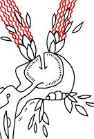 Irgendwo in einer meiner Zeichnungen hatte ich das auch mal: ein Pfeil, der zugleich die Mitte eines Buches markiert. Wenn ich die Zeichnung gefunden habe, setze ich einen Link.