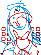 »Wie bist du eigentlich darauf gekommen, hauptsächlich Rot und Blau beim Zeichnen zu benutzen?«