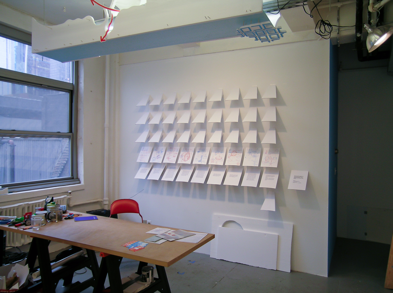 Im Atelier in NYC 2003, im Vordergrund auf dem Tisch liegen Auftragskärtchen aus der 2. Auflage, der 1. englischen Fassung [mehr hier]