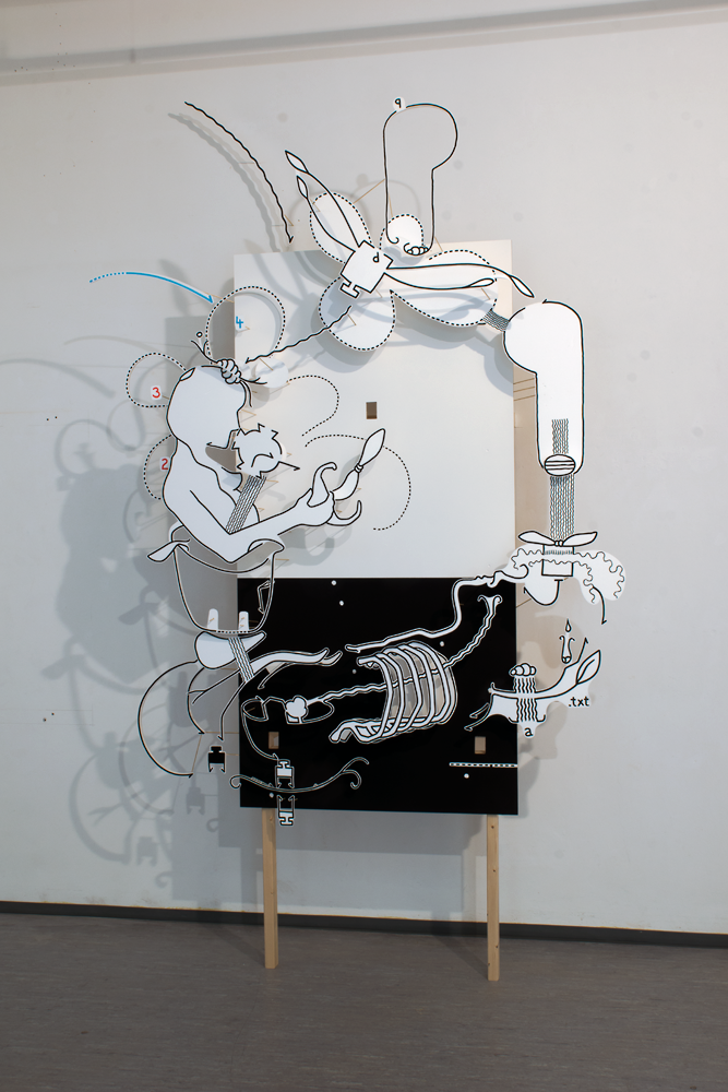 Dokumentation des Ab- und Rückbaus: Aufbau und Rückbau Tafel 2 "Nähe und Knochen"