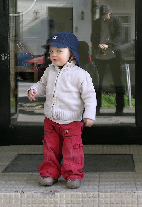 H. fotografiert bei zwei seiner Lieblingsbeschäftigungen: Hauseingänge untersuchen. Und...