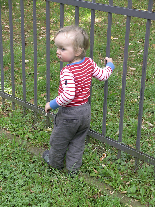 H. auf Reisen: in Reutlingen (Foto von J.R.) in einem Garten und...