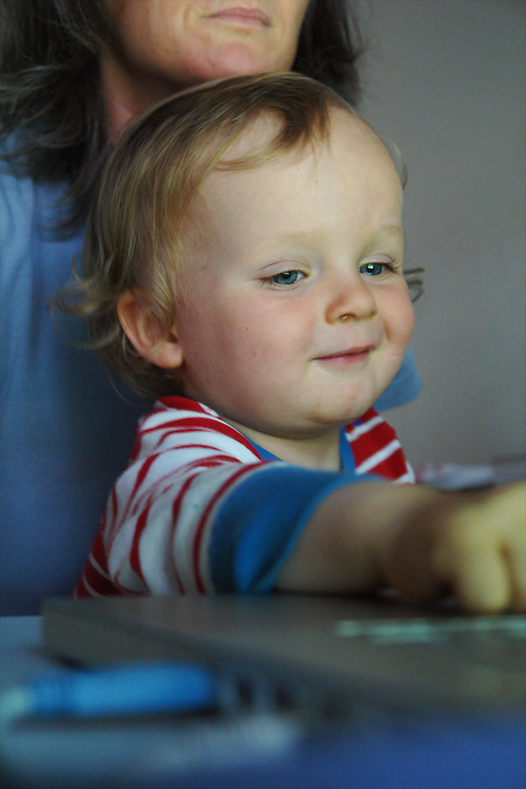 H. mit seiner Mutter vor dem Computer... den er zu seinem Frust nicht anlangen darf.
