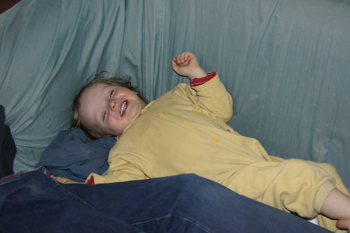 Bettfertig im Schlafanzug.