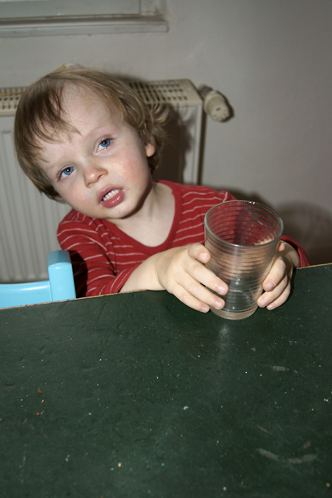 Eben gab es kurz Tränen jetzt möchte H. "Apfelsaft mit Wasser".