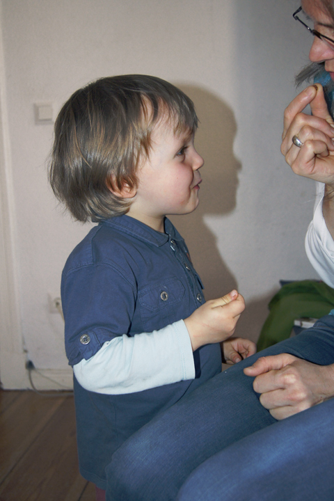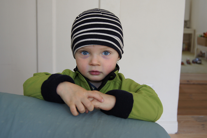 | Fertig angezogen und bereit zu gehen, aber noch auf seine Mutter wartend, stellte sich H. in Positur, als er merkte, dass ich ihn fotografierte... |