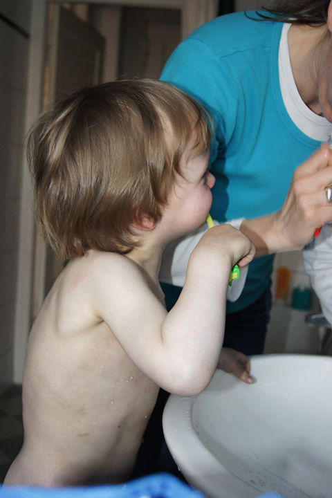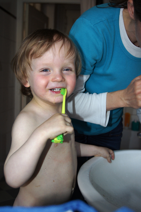 | Ein eher glücklicher Moment beim Zähneputzen... es gibt auch oft Tränen. |