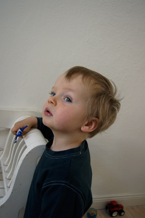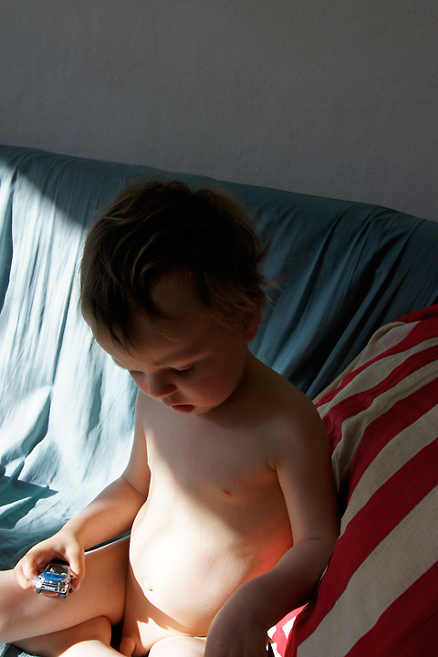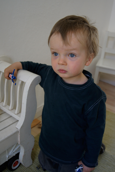 ... und einem kleinen Polizeiauto in der anderen Hand.