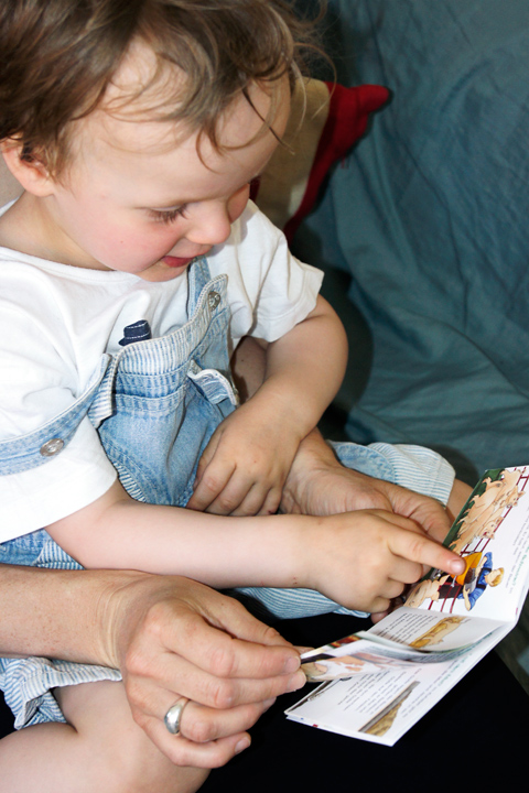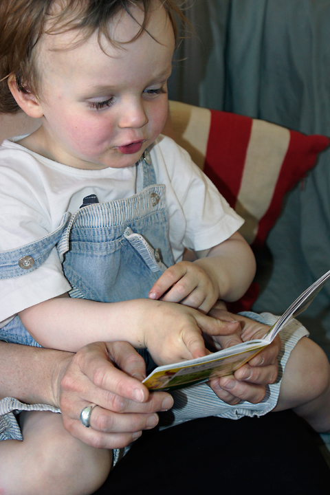 H. guckt ein Buch.