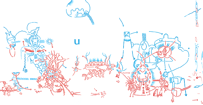 Into a World in a Day Projekt Nr. 21, 2001 Detail der Wandzeichnung (im Vordergrund Besucher im Zylinder) Dokumentation der Wand rechts im Bild unten. |